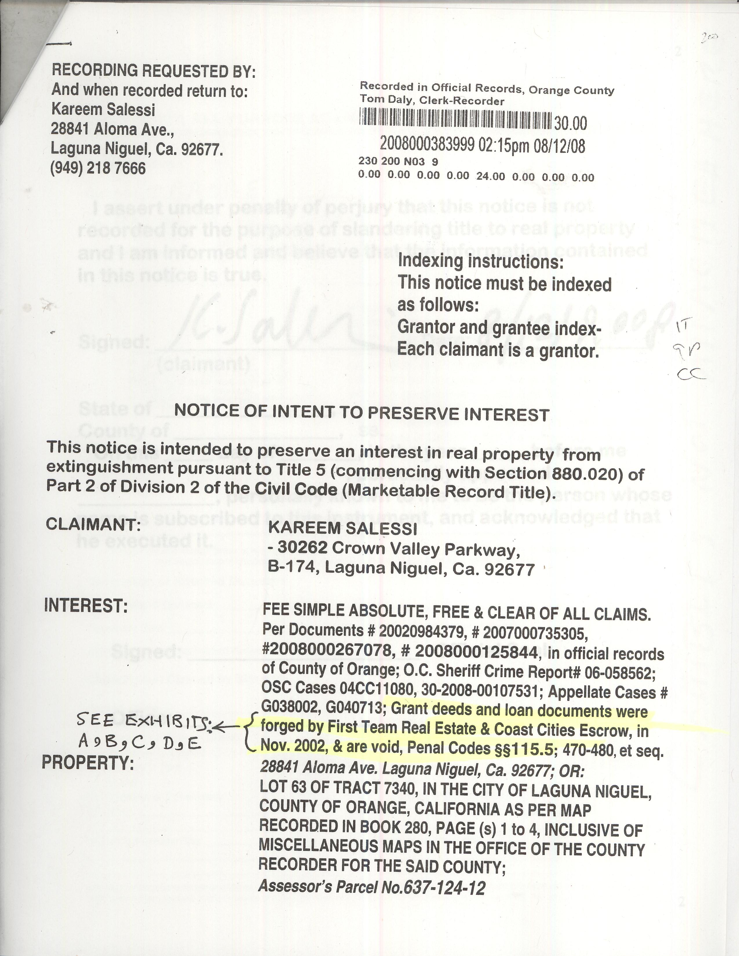 Many courts resorted to forgeries of their own records in support of fraudulent lawyers of institutional criminals, like many banks, realty, escrow and title companies. Courts even forged their own transcripts. All of these happened to me, in Orange County, California (“the World Capital of Fraud”), and I documented them in my lawsuits, and will try to compile a collection of them here to provide public awareness of the invisible organized crime webs which have been plundering this country, and the world, under colors of law, justice, democracy & freedom [for counterfeiters].